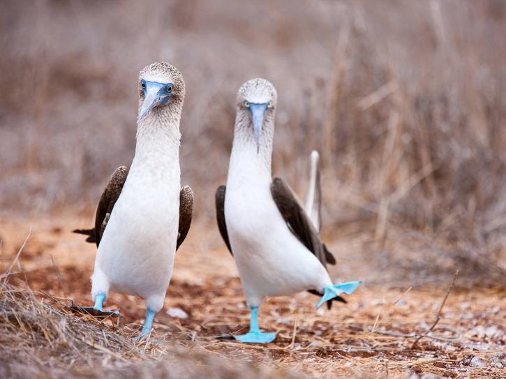 - Голубоногие олуши — крупные птицы, будто забывшие снять бахилы. Считается, что расцветка лап играет важную роль при выборе партнера: чем ярче они у самца, тем привлекательнее он кажется самкам. Олуши встречаются не только на Галапагосах — еще в Мексике, на островах в Калифорнийском заливе и недалеко от Эквадора и северного Перу. Бывают также красноногие олуши — их ареал обитания шире.
