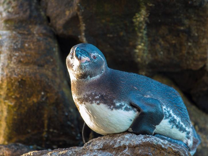 - Галапагосские пингвины — самые северные пингвины и самые маленькие из плавающих: их рост достигает примерно 50 сантиметров, а вес не превышает 2,5 килограммов. От «классических» пингвинов галапагосские отличаются довольно сильно: например, расцветкой и формой клюва.