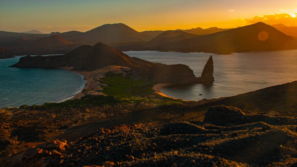 - Бартоломе — еще один остров, названный в честь друга Дарвина. Тут находится туристическая тропа из деревянных настилов, ведущая на потухший вулкан, с которого открывается вид на другие острова. Также Бартоломе популярен благодаря марсианским пейзажам — кратерам и скалам.