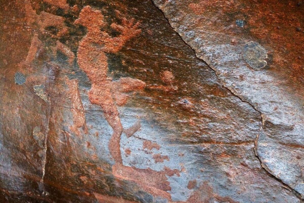Но больше всего посетителей впечатляет мужская фигура «ростом» около метра, показанная в профиль, и ведущие к ней через всю скалу восемь отпечатков человеческих ног. В том, что это мужчина, сомневаться не приходится. А вот почему Бес — сходу не поймешь. Но так его называют.