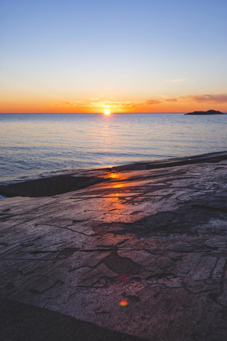 Петроглифы Карелии делят на две группы: одна находится на реке Выг, недалеко от города Беломорск, вторая — на побережье Онежского озера. Пешком не дойдешь. Эти места почти не изменились со времен наших древних предков. Здесь обнаружено более 3400 фигур и знаков возрастом около семи тысяч лет.