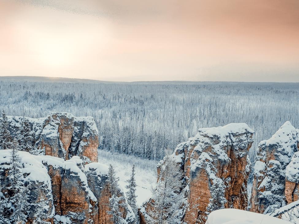 Если хотите встретить Новый год в России на краю света, советуем отправиться на Камчатку. Зимой на фоне заснеженных просторов вулканы выглядят особенно эффектно, а над термальными источниками стоит пар от горячей воды. К тому же зимой здесь меньше туристов, и вы сможете полностью погрузиться в атмосферу этих мест.