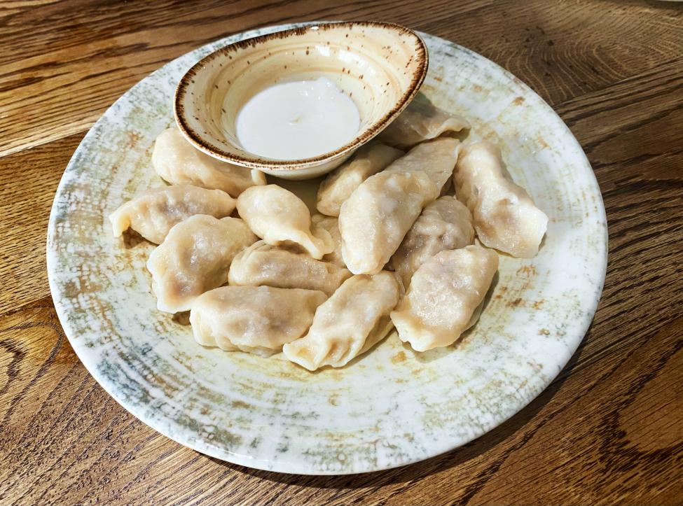 — с начинкой из мясного фарша, который приправлен уксусом из молочной сыворотки.