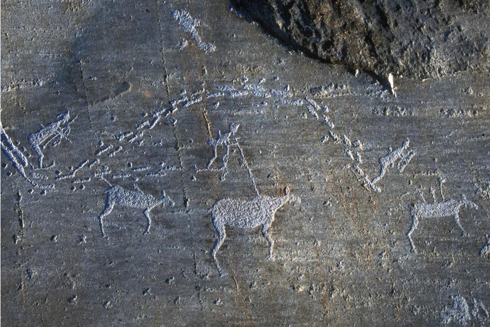 Если говорить об уникальности сюжетов, нужно рассматривать отдельно Онежские и Беломорские петроглифы. В эпоху неолита в Залавруге, на Белом море, изобразили не просто лыжников, а с деталями: лыжные палки с утолщениями, следы от палок и лыж, подъемы, спуски, горы — в общем, ландшафт показан. Целые повествования!