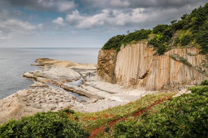 - Побываете на уникальном мысе Столбчатом на Кунашире, будто сложенном из множества «столбиков».