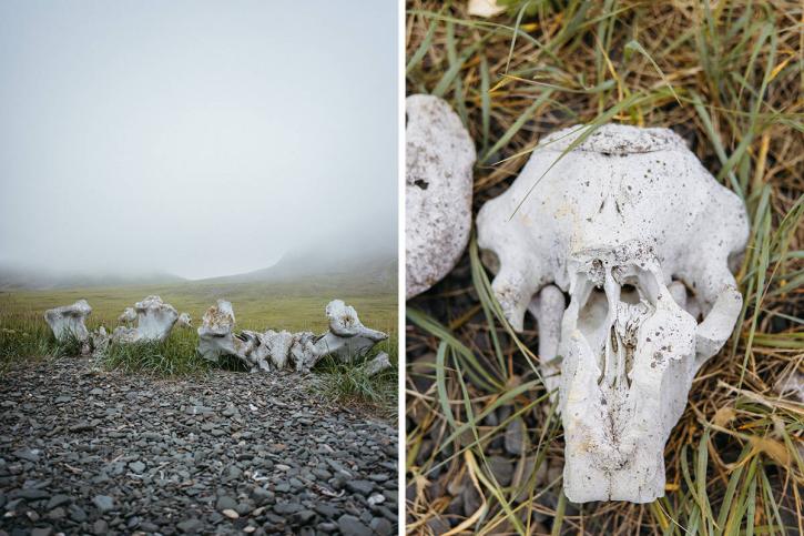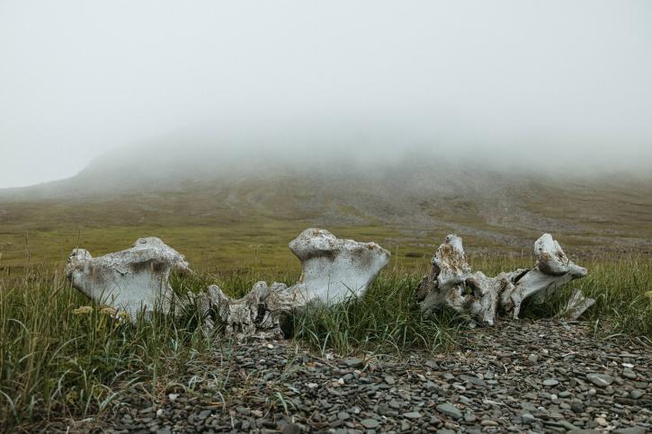 С птичьего острова мы переместились на Китовую аллею. Это уникальный памятник древнеэскимосской культуры на острове Итыгран — сооружение из огромных костей и черепов гренландских китов, вкопанных в грунт у берега. Подобных сооружений нет больше нигде в Арктике. Ученые до сих пор не могут понять предназначения аллеи и разгадать все ее тайны.