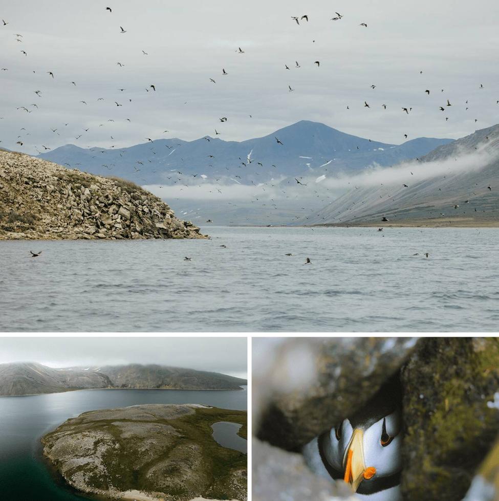 Сначала мы с удовольствием понаблюдали за большими птичьими колониями у острова Меркинкан. Это просто рай морских птиц! На птичьем базаре мы встретили бакланов, чаек, топорков и красавиц‑ипаток. Орнитологи‑любители смогут сделать крутые кадры с близкого расстояния. Но даже если вы никогда не занимались бёрдвотчингом, скорее всего, вам понравится. Как минимум потому, что вы до сих пор не испугались и дочитали до этого места.