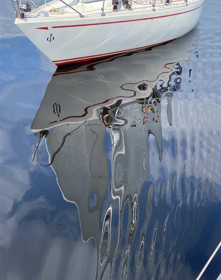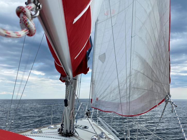 На Ладоге штиль. Такой, что озеро и небо на горизонте сливаются, а полуденное солнце начинает припекать так, будто мы не на севере. До острова Путсаари, куда направляется наша яхта, еще около 10 морских миль. Капитан Роман дает команду спустить паруса, и, прежде чем мы заведем мотор, есть пара минут насладиться тишиной и безветрием.