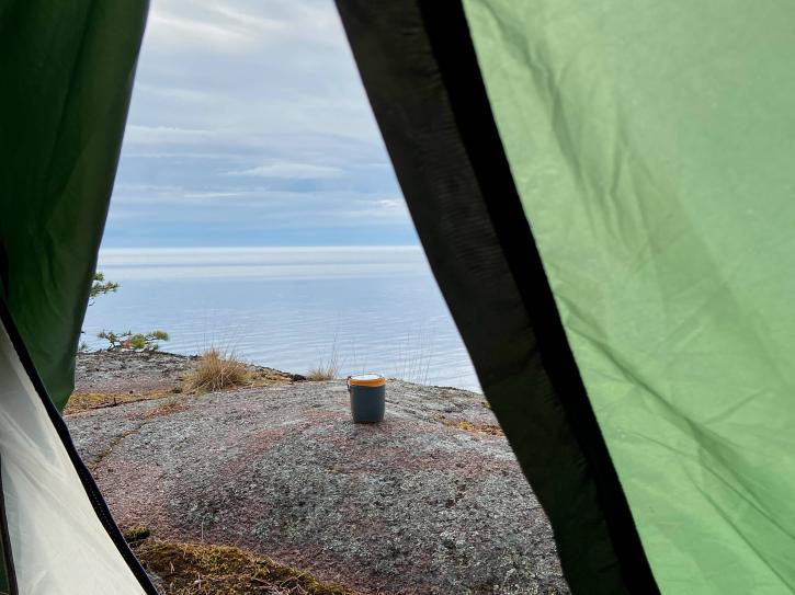 Вчера, после ужина, ходили в треккинг, белые ночи же! Светло, ладно, спокойно. Встречали закат на камнях, видели следы лосей и бобров. К полуночи, когда возвращались в лагерь, догнал дождь. Засыпала под его шум и переживала, как пройдет утро: а вдруг не закончится? как будем собирать палатки? завтракать?