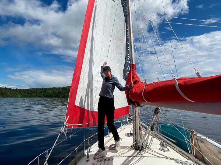 Открыла заметки в телефоне только сейчас — позади два насыщенных дня в открытой Ладоге. Роман учил ставить паруса, держать курс, управлять румпелем и внимательно следить за появляющимися на горизонте лодками и метеорами.