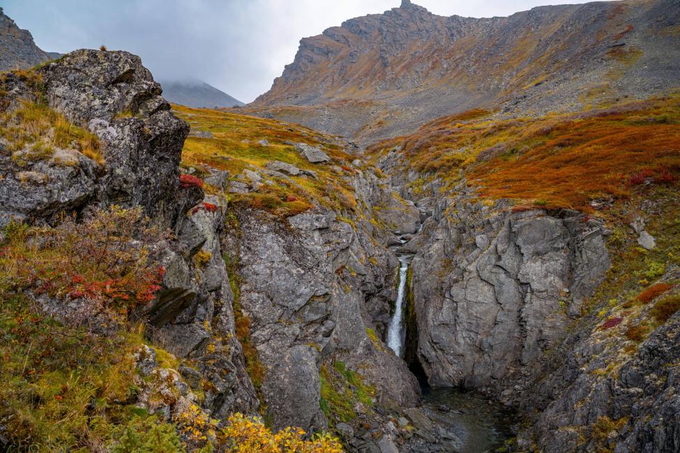 Обратно мы поехали другим путем — вниз по реке Сяду‑Яха, минуя ручей Немуръеган, где и остались с ночевкой, разбив лагерь. Видов красивых мы еще насмотрелись достаточно. С каждым днем краски осени становились всё ярче, закаты красивее, если такое вообще возможно после всего увиденного.