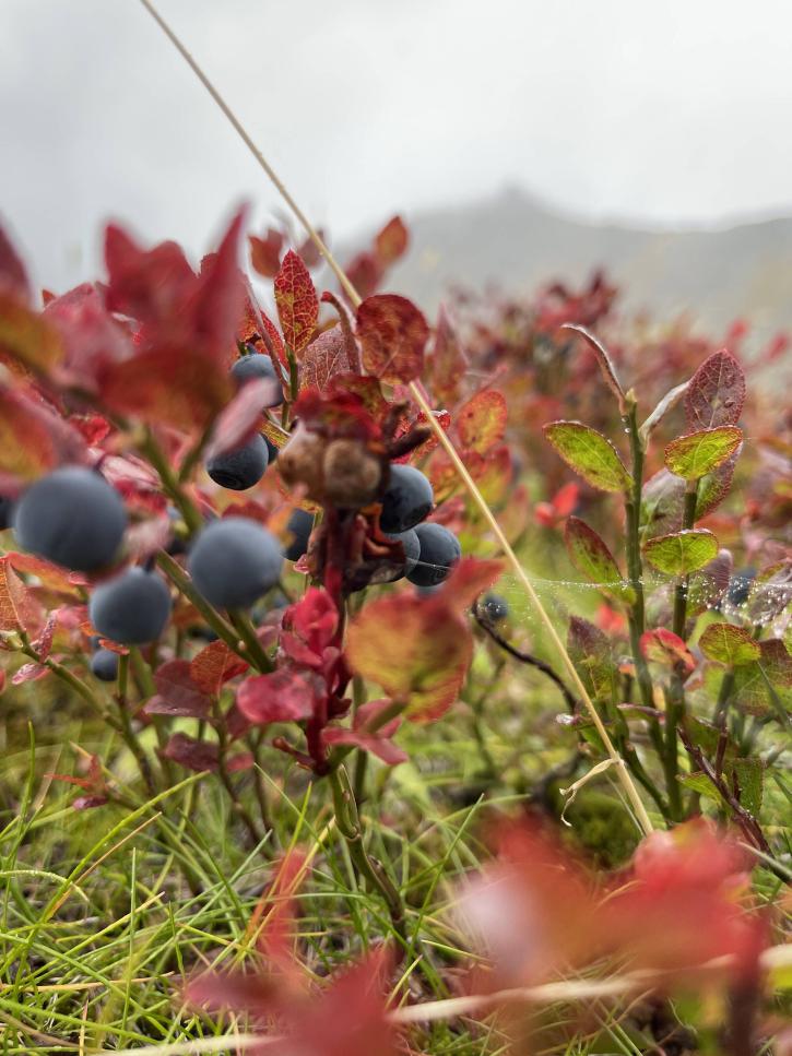 Еще один неоспоримый плюс этого места — плантации черники! В течение всего путешествия мы по пути собирали все ягоды. Мы ели ягоды поднимаясь в гору, спускаясь с горы, просто по дороге, в любой понятной и непонятной ситуации. К нашей большой радости, ягодный сезон еще не закончился, нам удалось полакомиться голубикой, черникой, брусникой и шикшей. У шикши в каждом регионе свое название, но чаще всего, пожалуй, встречается водяника. Ягода действительно водянистая, без выраженного вкуса, и хорошо утоляет жажду.