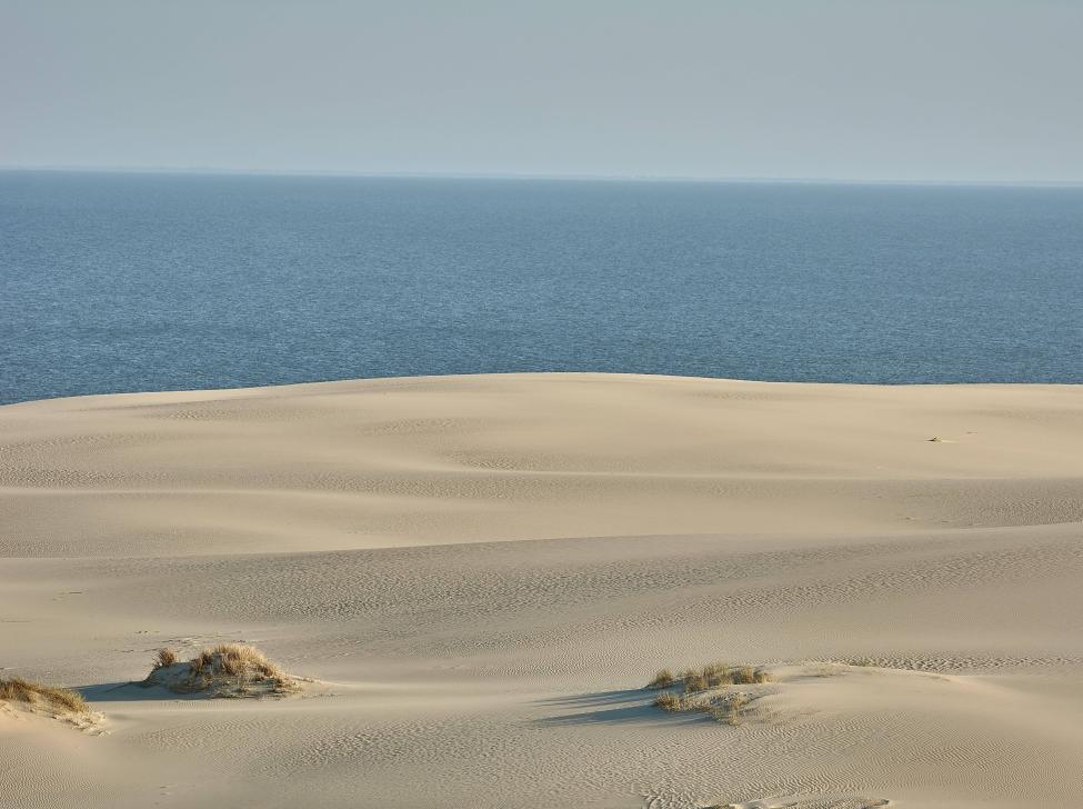 Вдоль берега тянется променад с деревянным настилом. Часть его проходит через озера, на которых обитают лебеди, утки и балтийские кулики.
