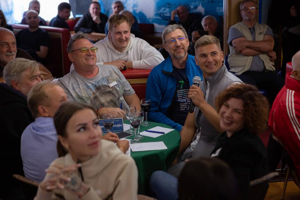 Во время круиза путешественники живут в удобных каютах. На судне есть ресторан, спортивный зал, сауна, бассейн, библиотека, музыкальный салон и зал для конференций, где проходили лекции от спикеров и игры «Что? Где? Когда?».