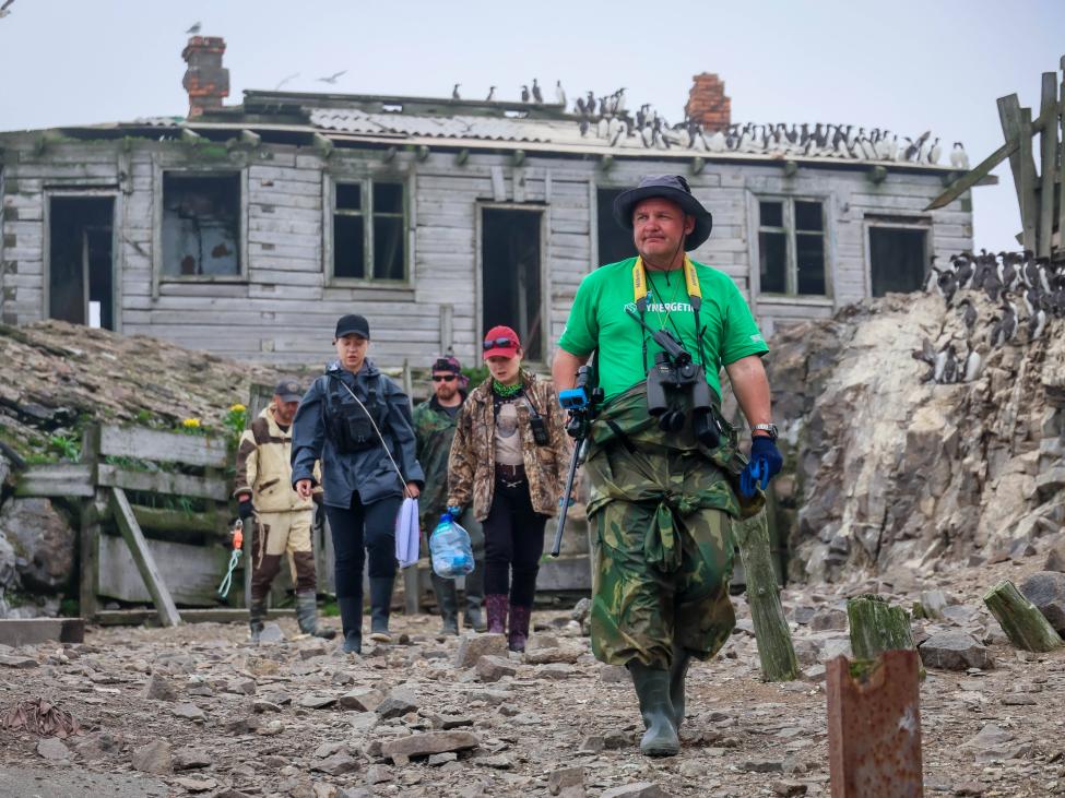 В том самом трехэтажном здании мы живем во время экспедиций, а остальное место на острове занимают тюлени и птицы. В доме есть неплохо сохранившиеся жилые комнаты, кухня, технические помещения. Всё необходимое — еду, воду, топливо и так далее — привозим сами. Воды нужно много: чтобы мыться, чтобы пить, для технических целей. Это непростая задача, каждый раз волнуемся, но пока справляемся.