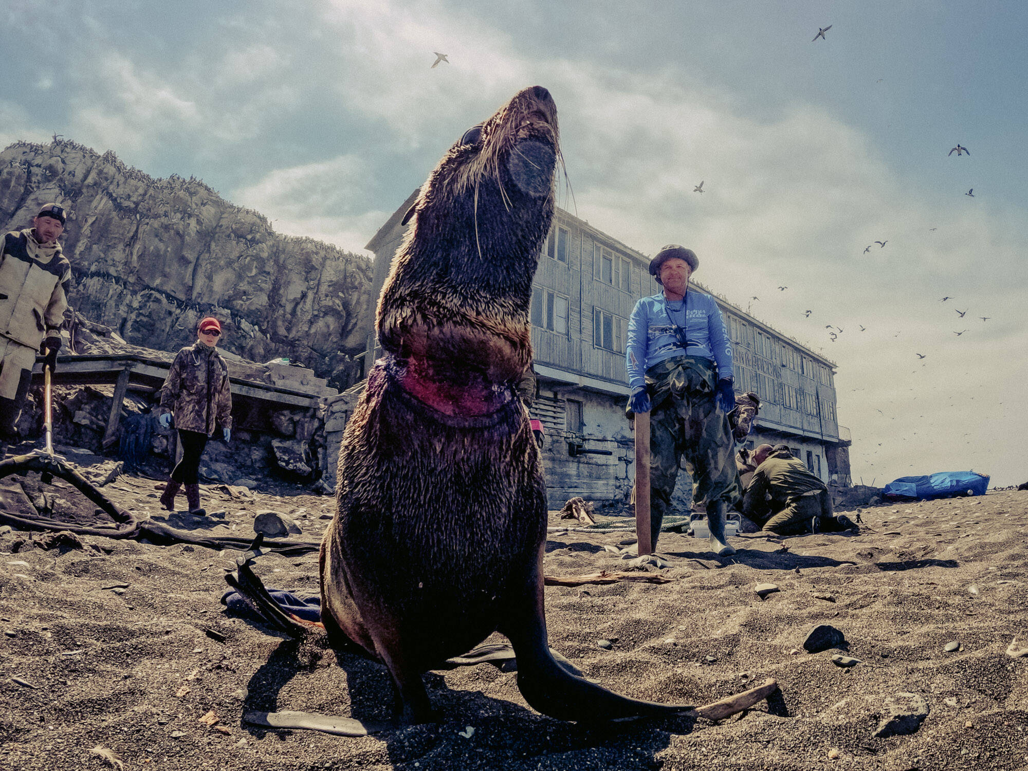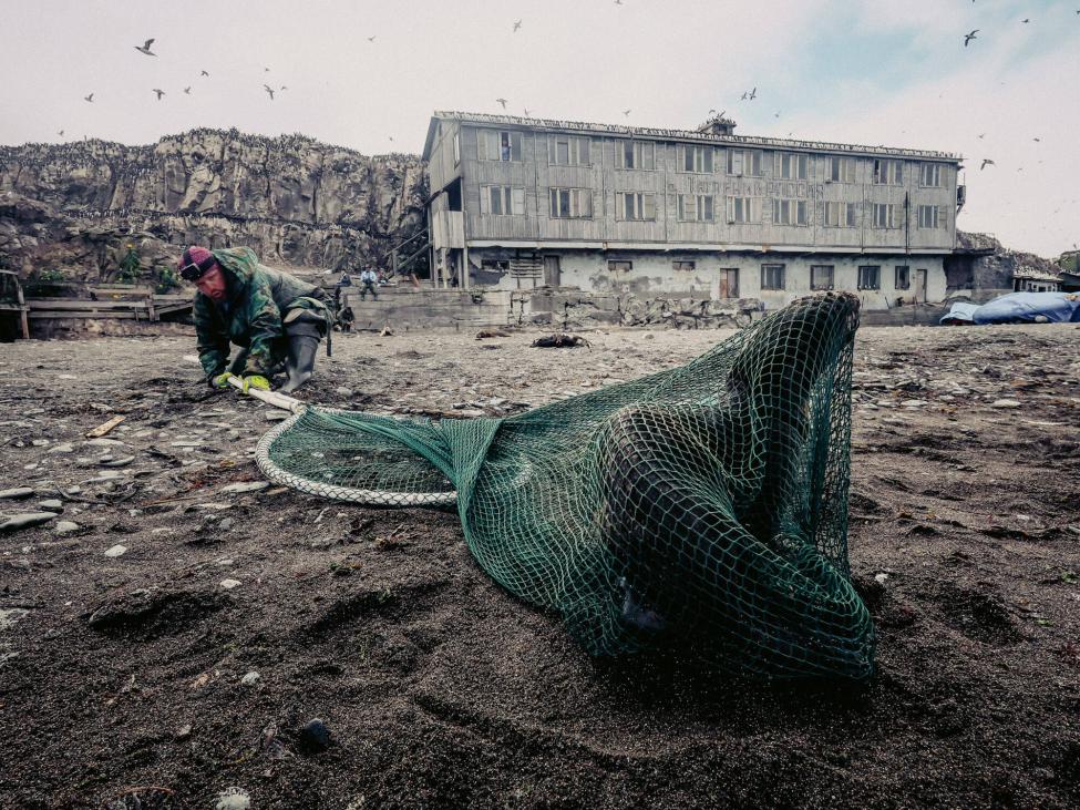В 70-х годах на острове построили комплекс — трехэтажное здание и инфраструктуру для забоя котиков. Советский союз нуждался в валюте, и их шкуры хотели продавать за рубеж. Главное сооружение неплохо сохранилось, но в целом, конечно, ему нужен капитальный ремонт. Пока о нем заботятся ученые и волонтеры, включая нас. Остальные технические здания на острове надо бы снести: их состояние совсем плачевно.