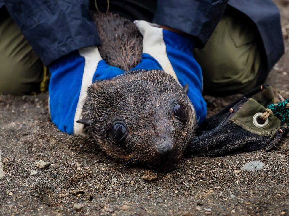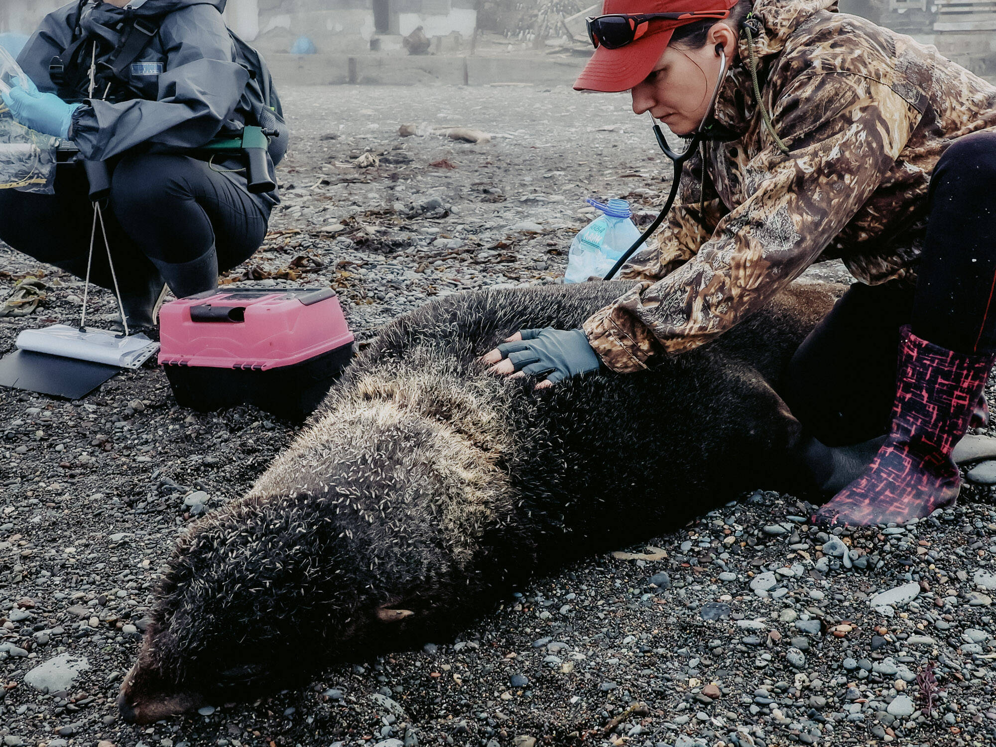В июне на остров заехали три сотрудника научной группы из Совета по морским млекопитающим, им помогал наш волонтер. Потом прибыла наша основная команда, и началась совместная работа по спасению ушастых тюленей. Силами 14 человек удалось распутать 80 взрослых животных и трех новорожденных сивучат.