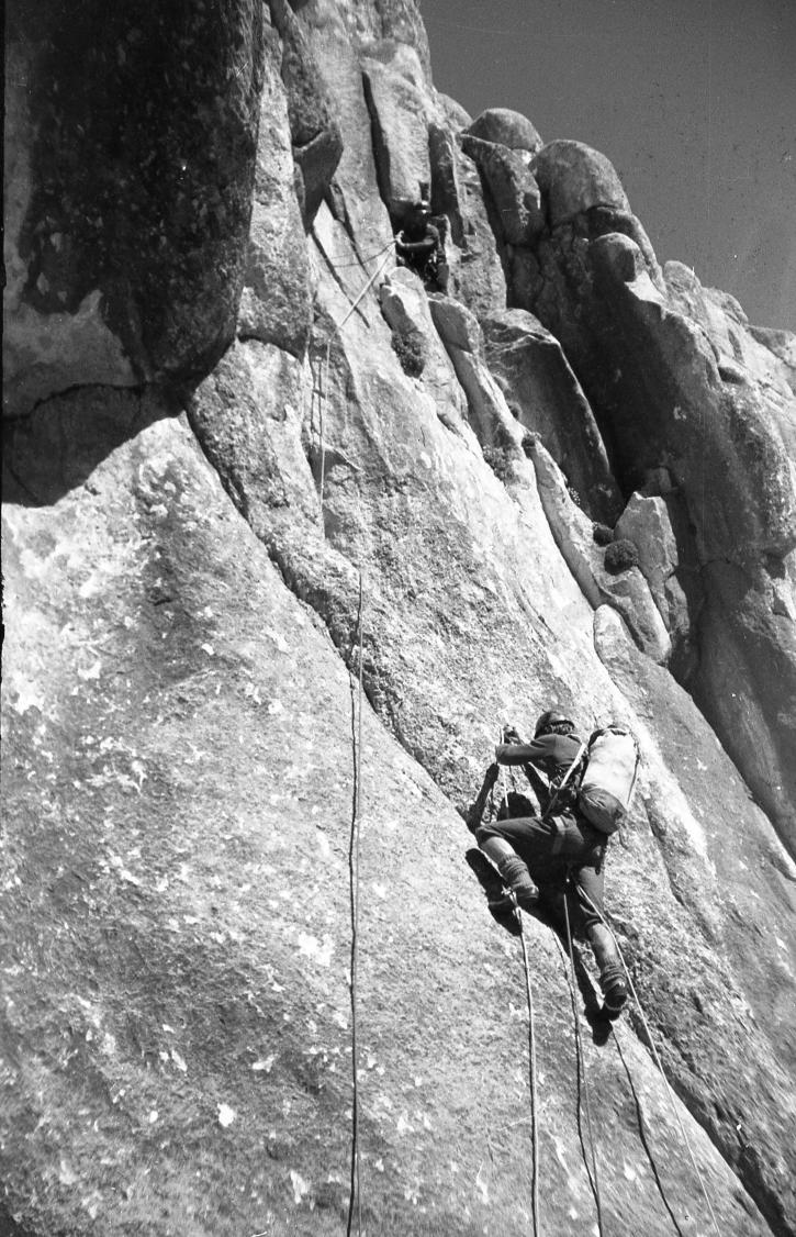 Я наблюдал за скалолазами и спортсменами, а потом мы познакомились, друзьями стали. Будучи совсем юными, с неисчерпаемым духом авантюризма, лазали в сапогах, резиновых плащах и шляпах, с папиросой в зубах, — это круто тогда было. «Беломорину» закуриваешь, залезешь по Зверевскому ходу на скалу Перья, а потом спускаешься вниз головой по шкуродеру с папиросой, дымящейся во рту, — красота! Всем на зависть, дамам восхищенье!
