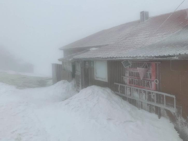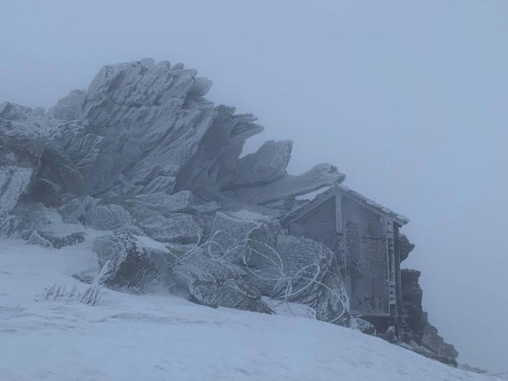 Когда я приблизилась к вершине, видимость стала совсем плохой, а метель — очень сильной. Ветер со снегом буквально сбивал с ног. Тропу на вершине перемело, поэтому пришлось искать приют по офлайн‑карте: просто идти в направлении отметки.