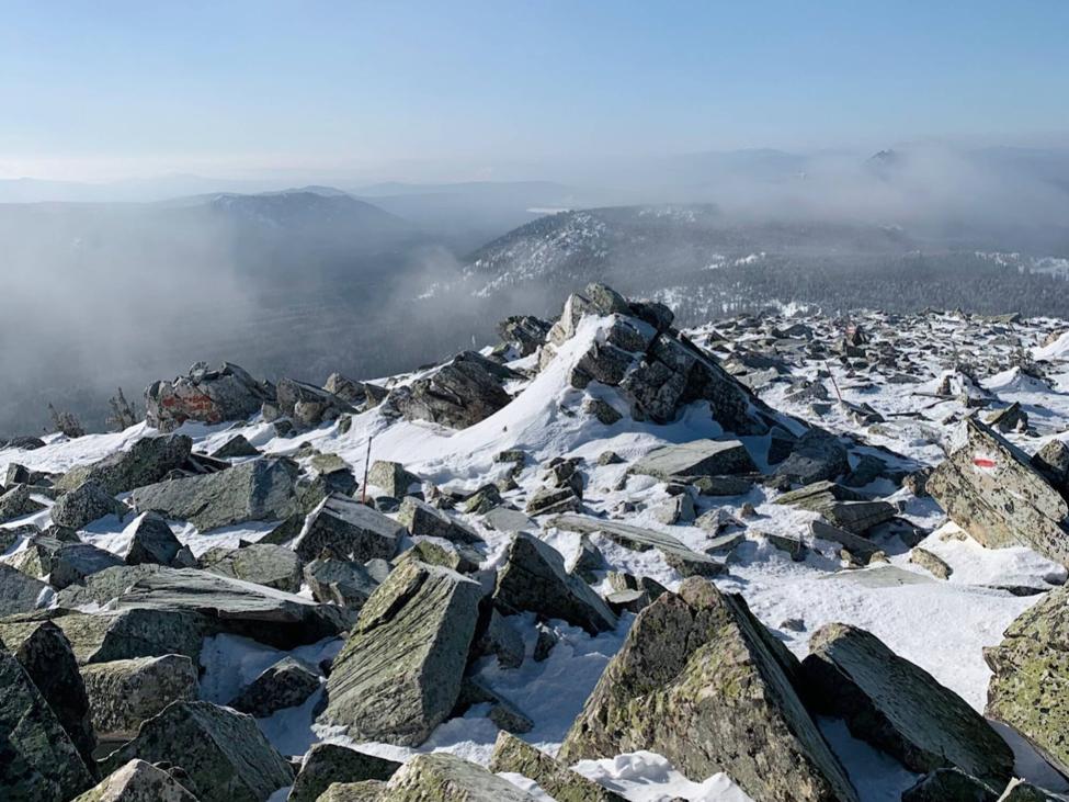 Утром я поднялась на Круглицу — самую высокую точку парка. Это был самый тяжелый подъём из‑за наклона и скользкой поверхности. А еще в верхней трети гора почти полностью покрыта курумником, передвигаться по нему и зимой и летом надо осторожно.