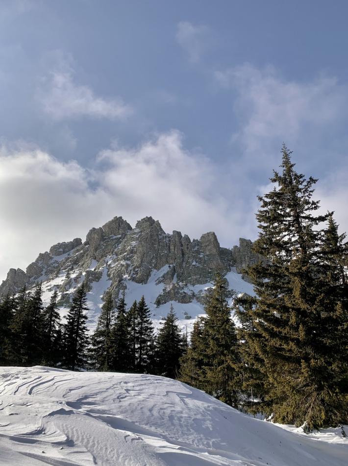 И всё же самое сильное впечатление произвела на меня не река из камней, а гора с неожиданным названием Монблан. Уже по дороге к ней я поняла, что увижу одни из самых запоминающихся пейзажей. Благодаря вчерашней метели лес был похож на зимнюю сказку: деревья припорошило снегом, сугробы блестели на солнце.