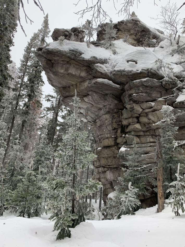 В последний день я посетила одну из самых известных достопримечательностей — Большую Каменную реку. Правда, вышла далеко за пределы смотровой площадки, несколько раз довольно глубоко провалилась в снег и чудом не угодила ногой в щель между валунами. Зимой ходить по валунам опасно: под снегом не видно пустот между ними. На реку из камней можно посмотреть с безопасных площадок «на берегу».