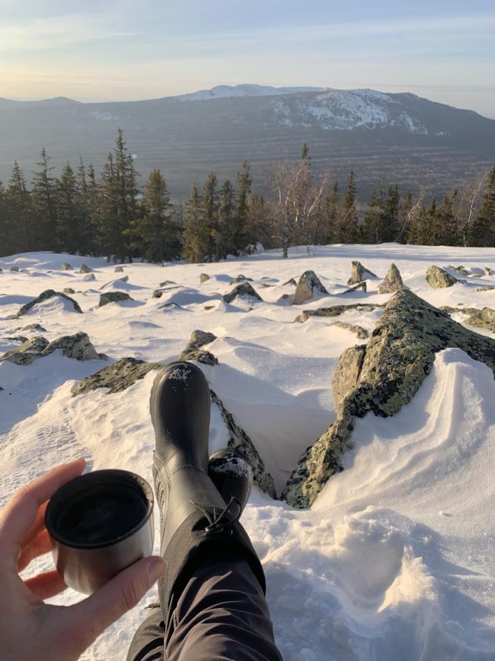 Большая часть путешествия пришлась на март, но его можно назвать зимним из‑за соответствующего списка экипировки, погодных условий и пейзажей вокруг. На Таганае я встретила календарную весну, провела несколько дней без связи, грелась у печек, побывала в самом высокогорном и ветреном приюте Урала и поднялась на шесть вершин‑тысячников.
