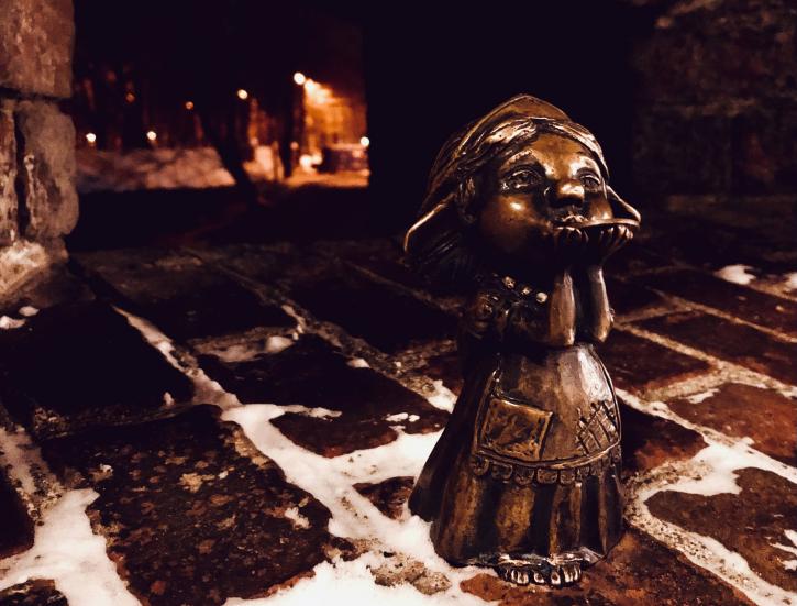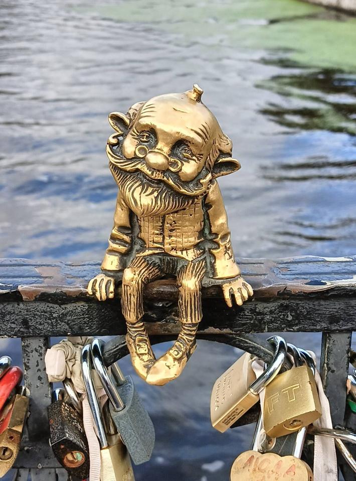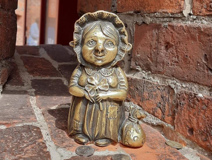 Мини‑скульптуры хомлинов — это очаровательные бронзовые фигурки в виде человекоподобных существ с эльфийскими ушками. Их также называют домовыми, ведь само название «хомлин» происходит от английского слова home — «дом». Всего в Калининграде семь таких скульптур.