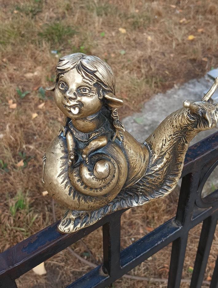 Дочка Уля. Если мама Варвара посылает прохожим поцелуи, то ее проказница‑дочка показывает язык, сидя верхом на улитке. Найти Улю можно на проспекте Мира, у входа в Калининградский зоопарк — любимое место детворы.