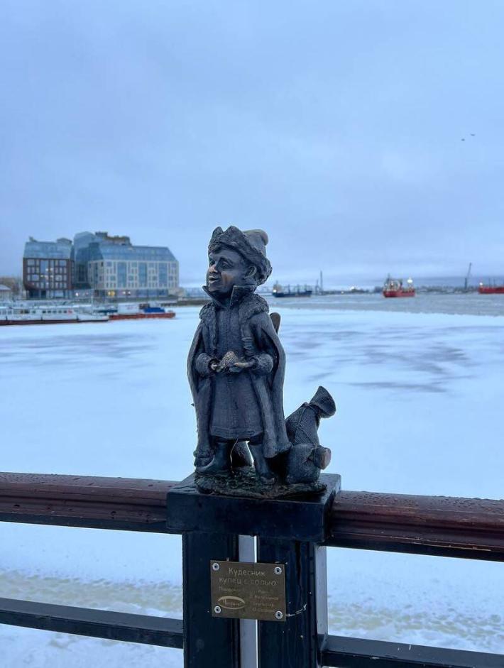 Мини‑скульптуры кудесников на набережной Северной Двины — это серия из пяти придуманных сказочных персонажей, внешне похожих на детей. Каждый из них — хранитель одного из символов региона. Вот эти артефакты: