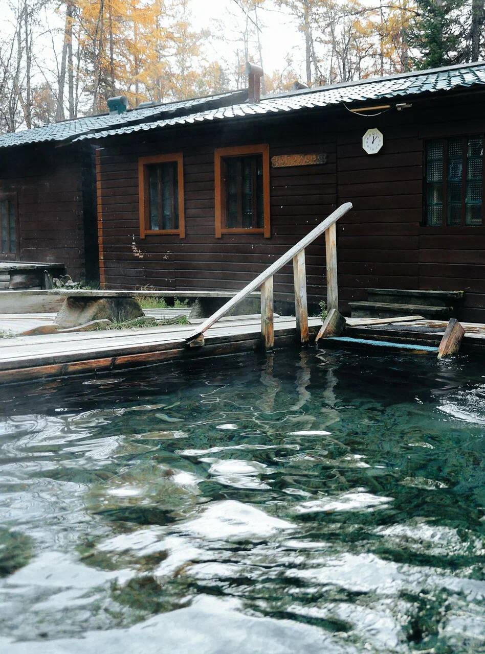 Бассейны с термальной водой расположены на открытом воздухе, с видом на озеро и Байкальский хребет. Купаться в них можно даже зимой. База удалена от населенных пунктов, здесь нет связи, только Wi-Fi на территории комплекса. Это отличный вариант отдыха для тех, кто хочет уехать от городской суеты и устроить себе цифровой детокс.