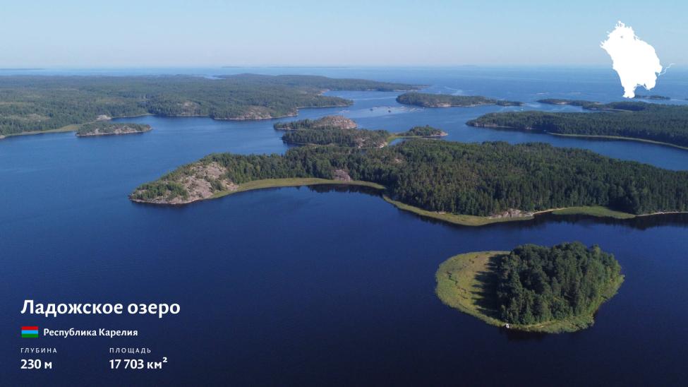 Ладожское озеро — самое большое пресноводное озеро в Европе и третье по величине озеро России после Каспия и Байкала. В него впадает 35 больших и малых рек, а на площади около 18 000 км² расположено более 650 островов. Часть из них образуют живописные шхеры — цепочку небольших скал, отделенных друг от друга проливами. Одна из особенностей Ладожских шхер — так называемые «рифовые горы», которые обрываются в озеро отвесными скалами высотой до 80 метров.