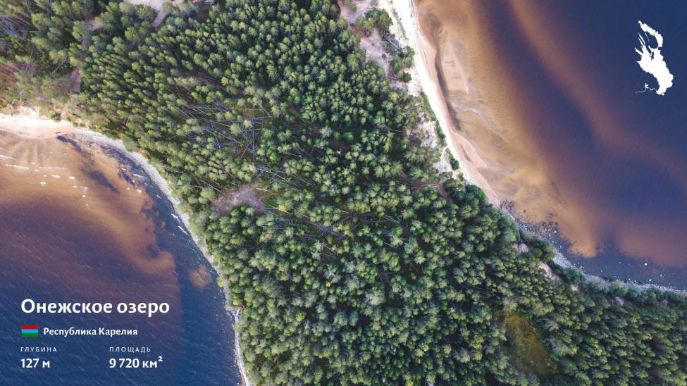 Онежское озеро — еще один крупный водоем северо‑запада — расположено между Белым морем и Ладогой. Многокилометровые длинные заливы на севере озера, похожие на следы кошачьих когтей, — результат деятельности древнего ледника, который «полз» по территории современной Карелии 12 тысяч лет назад.