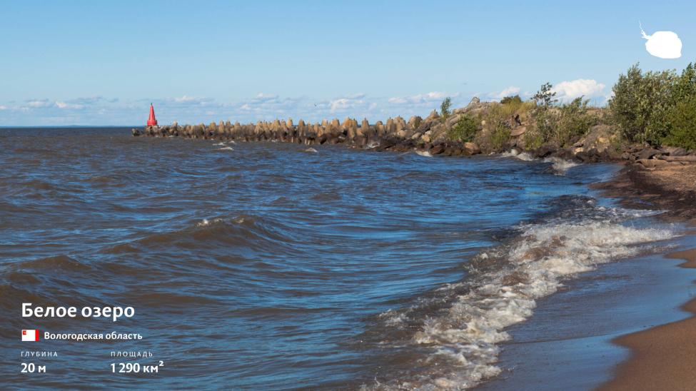 Входит в десятку крупнейших естественных озер Европы. Получило свое название из‑за цвета воды — на дне находятся мощные отложения белой глины, которая смешивается с озерной водой. Озеро славится своими рыбными запасами, рыбу отсюда поставляли к царскому столу, а в XVII веке здесь был организован Государев рыбный двор для контроля над промыслом.
