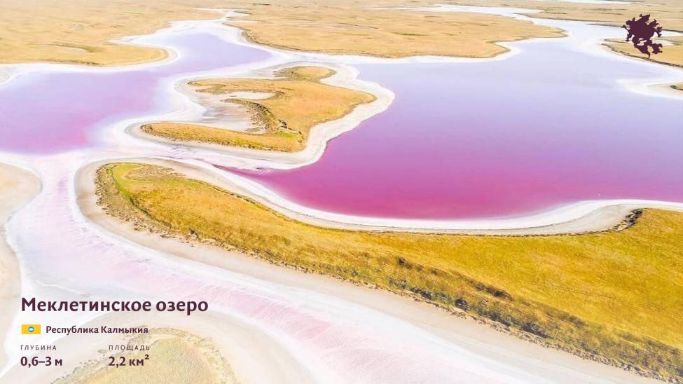 В Калмыкии есть уникальное соленое розовое озеро. Своим цветом, а также народным названием «Розовое» оно обязано перелетным птицам, тысячные стаи которых останавливаются здесь осенью и весной. Мигрирующие птицы занесли мелкого розового рачка, который расплодился в озере в таких количествах, что вода и соль в нём кажутся розовыми.