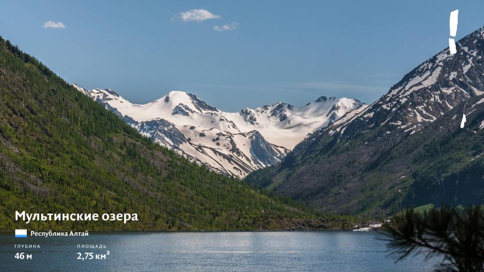 Наши туристы говорят, что пейзажи Алтая ничем не уступают видам Швейцарии. Мультинские озера — один из таких примеров. Заснеженные шапки гор вдалеке, тайга вокруг, а вода такая прозрачная, что видно каждый камушек.