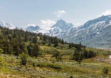 Позавтракав, вы выйдете на пеший маршрут к горным озерам и малым ледникам. Подниметесь к началу перевала Ленинградский (3010 м), откуда откроется панорама Талдуринской долины. По пути увидите безымянное озеро бирюзового цвета и подойдёте вплотную к ледовому языку.