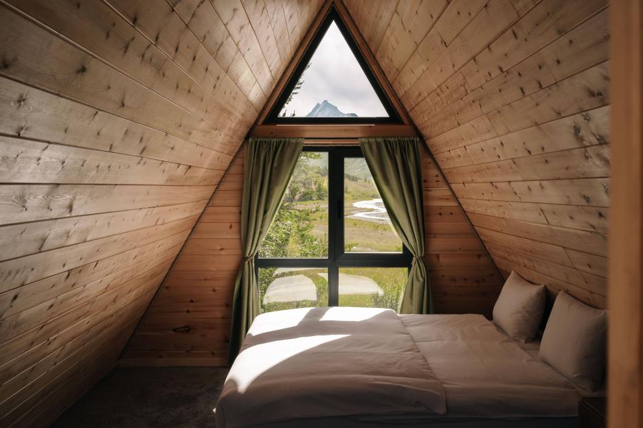 Вы разместитесь в отапливаемых А-фреймах 20 м² с двуспальной кроватью king size или двумя односпальными кроватями. Дома выполнены из экологичных материалов с внутренней отделкой из кедра. Рядом с домиком — личный биотуалет и умывальник с холодной водой.