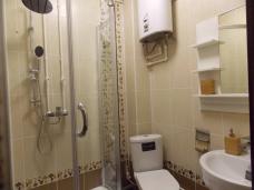 В домике: комод, вешалка, полка, прикроватные тумбочки, светильники, розетки.