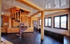 На территории: банный комплекс, столовая, открытая терраса, шатер 70 м² для отдыха — с панорамными окнами, камином, диванами и креслами-мешками.