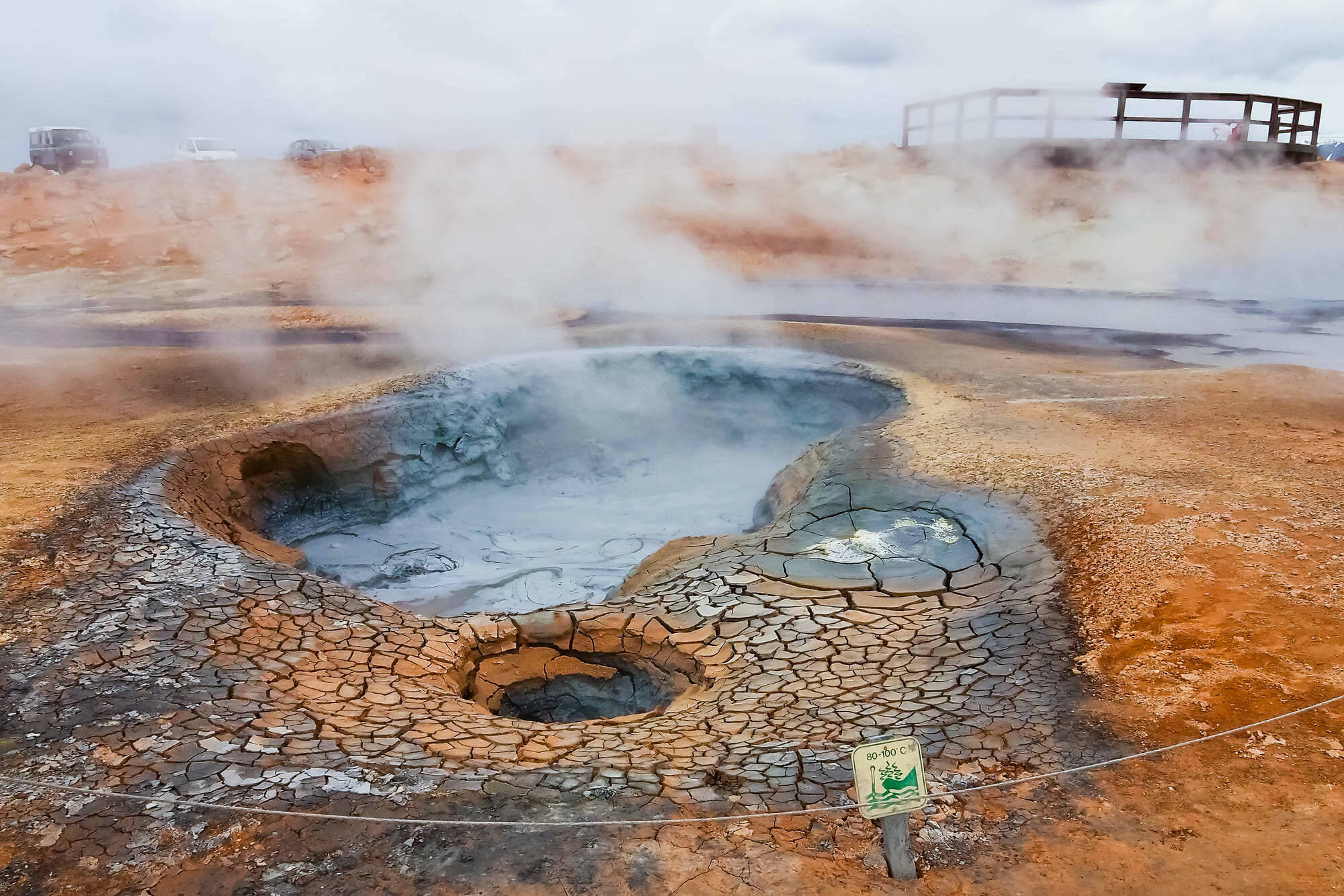 Затем вы отправитесь в пригород, к знаменитому озеру Миватн. Увидите огромные лавовые поля, кратеры вулканов, гигантские фигуры из застывшей магмы и пещеру с горячей водой. Неподалеку находятся места съемок сериала «Игра престолов» и один из самых известных водопадов Исландии — Годафосс.