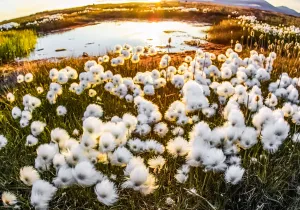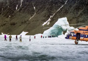 Добравшись сюда на вертолете, вы окажетесь в нетронутой тундре в самое теплое время года, когда воздух прогревается до +6 °C. Своими глазами увидите заливы, полные айсбергов, и голубые ледники. Полюбуетесь с воздуха на полноводные реки и прогуляетесь пешком на побережье, где растут неприхотливые полярные цветы.