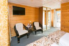 Отель расположен на Ольхоне в окружении живописного леса. Номера отделаны экологически чистыми материалами. Вы разместитесь в двухместных номерах делюкс с панорамным видом на Байкал. В каждом номере: Wi-Fi, ванная комната, гигиенические принадлежности, тапочки, сейф. Площадь номера: 18 кв. м.