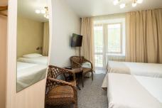 Гостиничный комплекс находится на берегу озера Байкал. Вы разместитесь в номере категории стандарт. В номере: две односпальные кровати, две тумбочки, санузел с душевой кабиной, ЭЛТ телевизор, телефон для внутренней связи, электрический чайник, фен.