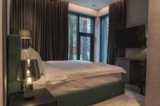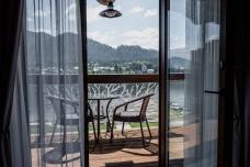 В отеле делюксы поделены на 3 зоны по 7 номеров. У каждой зоны есть свой вход с улицы, общее пространство с камином, диваном, ТВ и видом на Катунь. Из панорамных окон открываются захватывающие виды на реку, густые леса и величественные горные хребты.