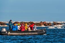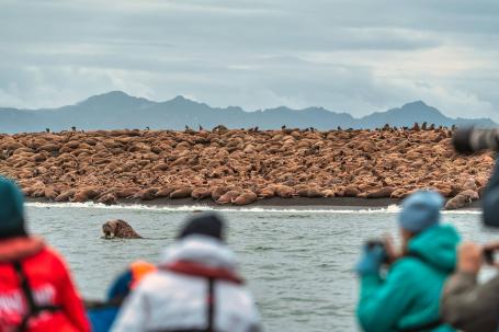На экспедиционных лодках вы отправитесь к огромному лежбищу моржей и понаблюдаете за великанами с близкого, но безопасного расстояния. На острове также обитает редчайший вид птиц — кулик-лопатень. А если повезет — на берегу вы сможете заметить бурых медведей, которые часто приплывают сюда с материка.
