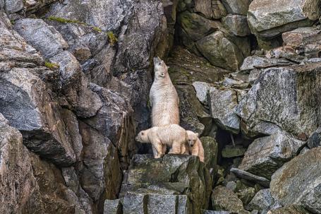 В один из дней ваш лайнер подойдет к труднодоступному острову Геральд, расположенному в 40 километрах от Врангеля. Его скалистые берега непригодны для высадки — поэтому вы будете исследовать остров на лодках-зодиаках. Увидите лежбища моржей, впечатляющие птичьи базары, а если повезет — сможете сделать потрясающие фотографии белых медведей на фоне темных изрезанных скал.