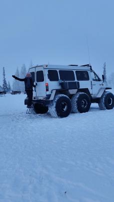 В стойбище оленеводов вас отвезут на вездеходе ТРЭКОЛ (в салоне тепло).