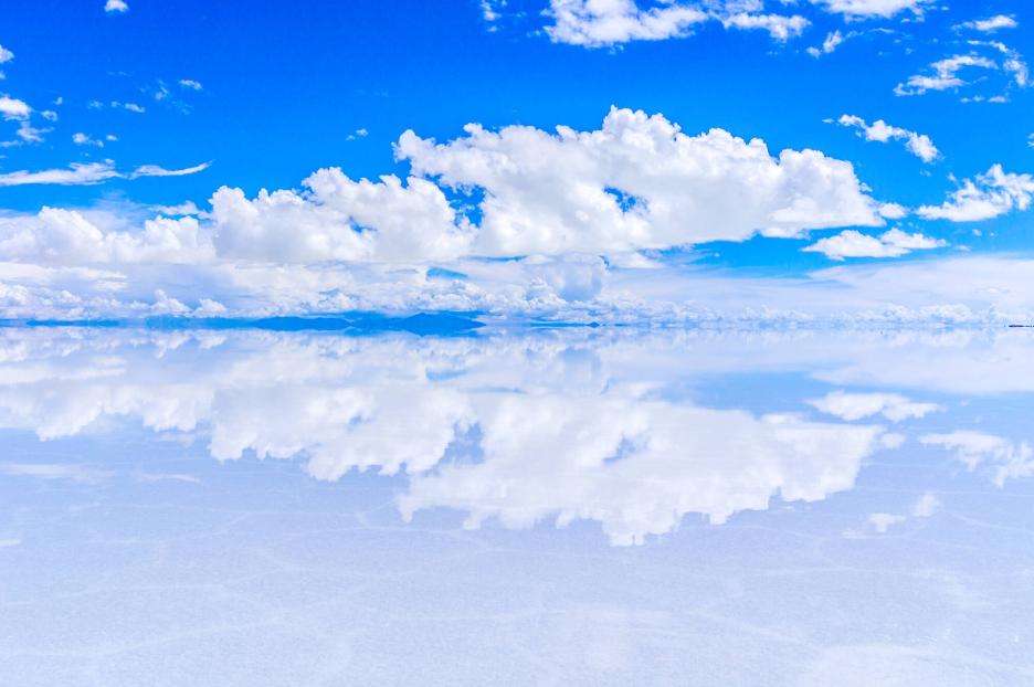 На солончаке Уюни ощутим эффект бесконечного пространства, где стирается грань между небом и землей