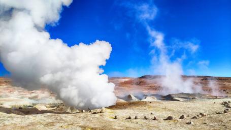 Возвращаясь к лагуне Полькес, мы направимся к гейзерам Соль де Маньяна — активной геотермальной зоне, где из-под земли вырываются струи пара и кипящей грязи. Это одно из немногих мест, где можно вживую увидеть мощь внутренних процессов Земли.